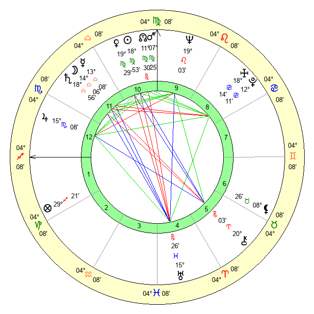 | Sun | 18 Virgo 54 | 20 Virgo 11 | 0 Capricorn 51 |