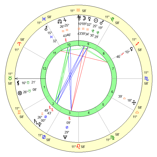 | Uranus | 10 Aquarius 41 | 23 Taurus 21 | 15 Aquarius 32 |