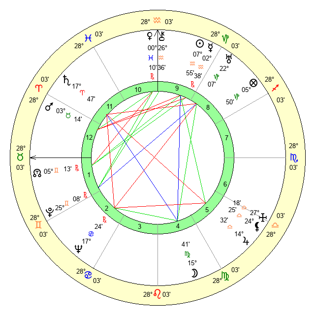 | Moon | 15 Virgo 42 | 28 Capricorn 29 | 25 Scorpio 56 |