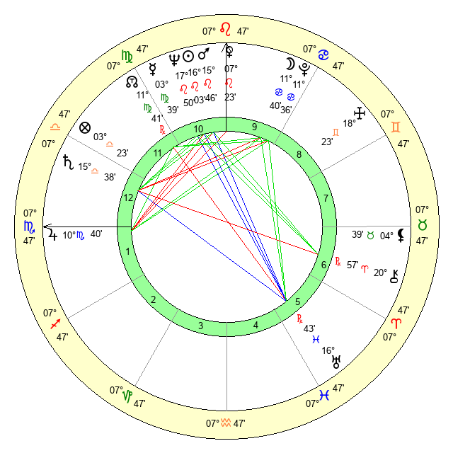 | Moon | 11 Cancer 38 | 22 Aquarius 9 | 14 Aries 43 |