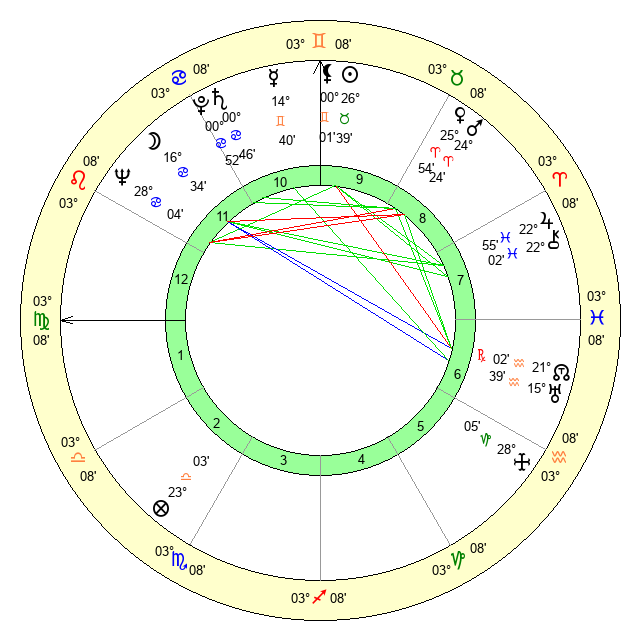 | Sun | 26 Taurus 39 | 28 Taurus 0 | 12 Virgo 2 |