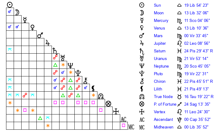 Pluto | 19 Virgo 23 | 29 Capricorn 37 | 20 Virgo 36 |