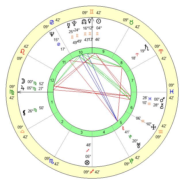 | Sun | 4 Gemini 47 | 5 Gemini 42 | 26 Virgo 6 |