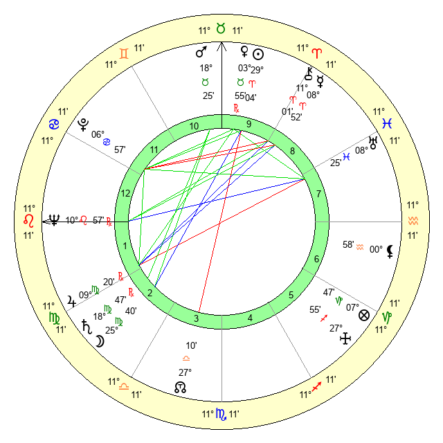 | Venus | 3 Taurus 55 | 25 Pisces 29 | 25 Gemini 42 |