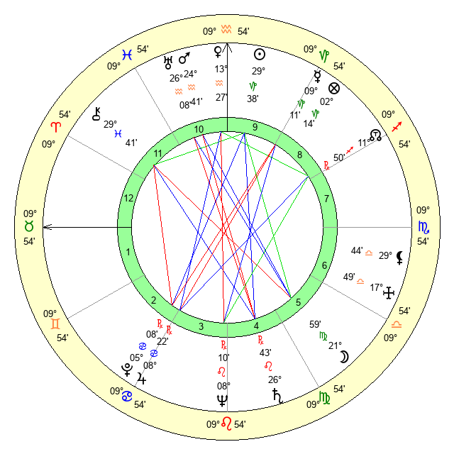 | Moon | 22 Virgo 0 | 18 Libra 55 | 12 Leo 28 |