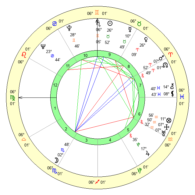 | Saturn | 6 Gemini 42 | 29 Pisces 22 | 18 Gemini 20 |