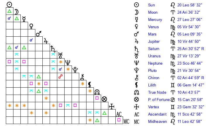 Uranus | 27 Virgo 17 | 1 Gemini 15 | 0 Libra 45 |