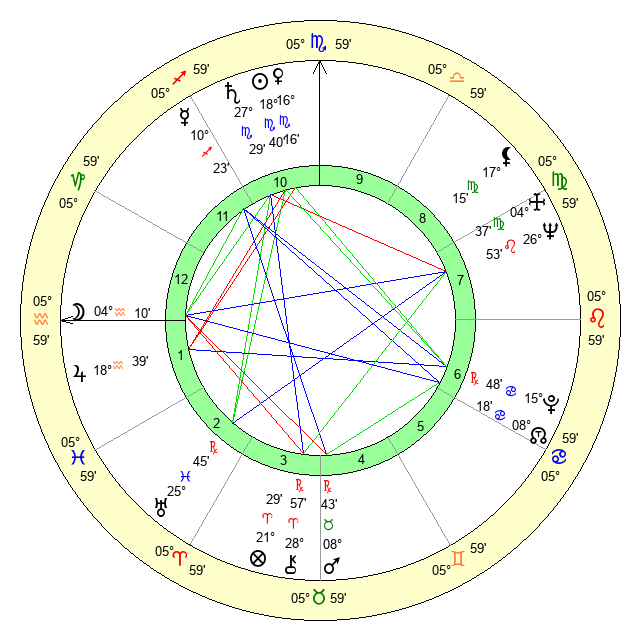 | Moon | 4 Aquarius 9 | 14 Leo 49 | 22 Virgo 45 |