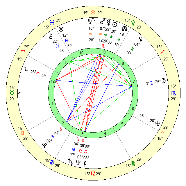 | Moon | 25 Scorpio 14 | 24 Virgo 40 | 10 Scorpio 37 |
