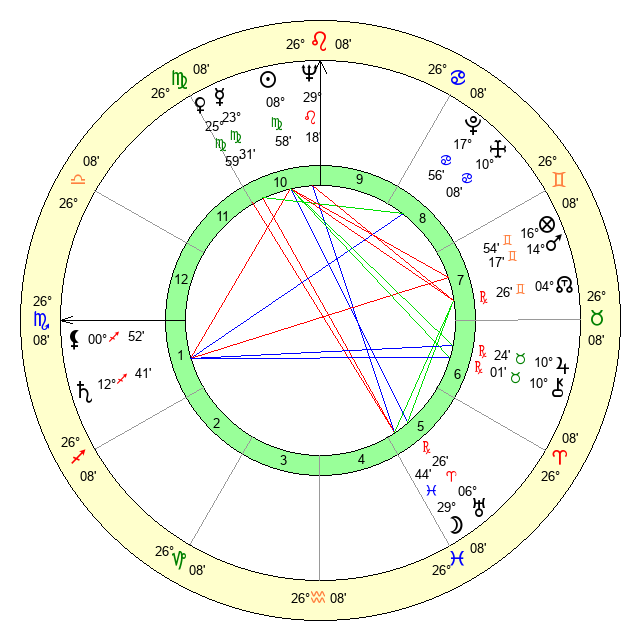 | Venus | 26 Virgo 0 | 8 Leo 24 | 24 Capricorn 47 |