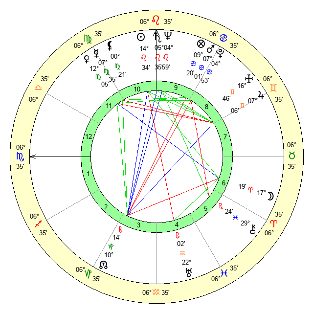 | Venus | 12 Virgo 6 | 8 Cancer 46 | 17 Capricorn 56 |