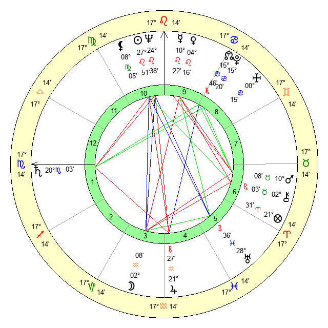 | Moon | 2 Aquarius 10 | 9 Leo 47 | 20 Virgo 57 |