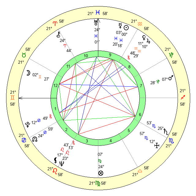 | Moon | 2 Gemini 32 | 19 Scorpio 53 | 6 Capricorn 14 |