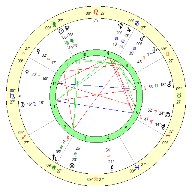 | Venus | 20 Libra 59 | 4 Leo 27 | 24 Scorpio 26 |