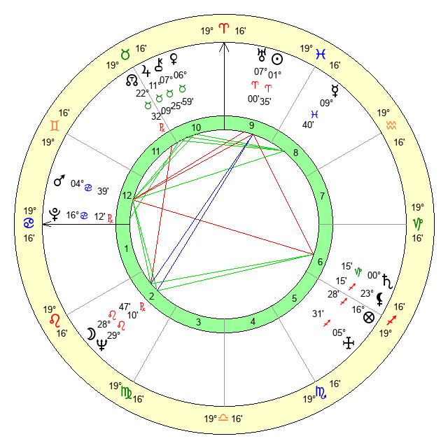 | Sun | 1 Aries 35 | 2 Aries 19 | 4 Cancer 34 |