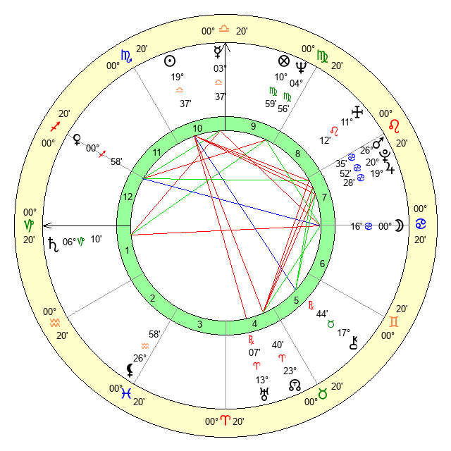 | Mars | 26 Cancer 36 | 14 Scorpio 36 | 11 Leo 12 |