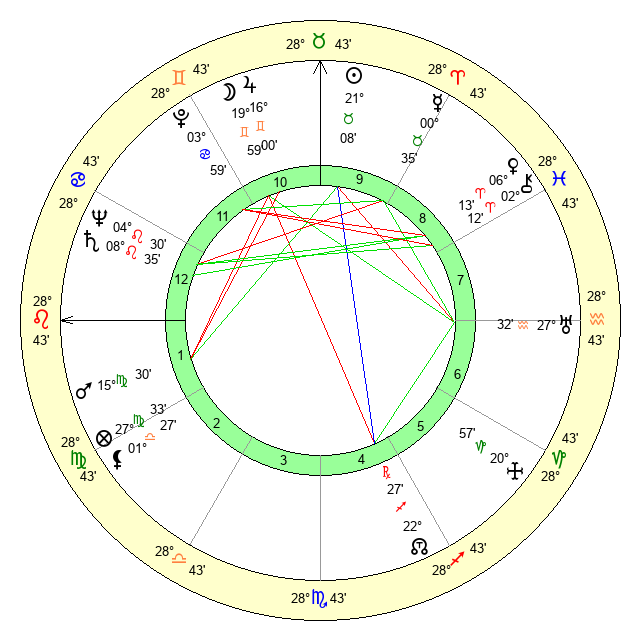 | Moon | 19 Gemini 58 | 22 Scorpio 14 | 19 Taurus 13 |