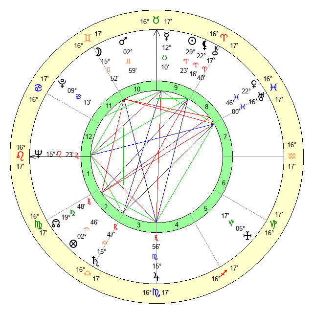 | Neptune | 15 Leo 23 | 0 Aries 45 | 17 Leo 29 |
