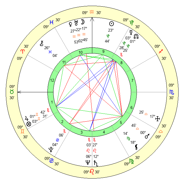 | Moon | 17 Aquarius 38 | 4 Leo 16 | 12 Capricorn 40 |