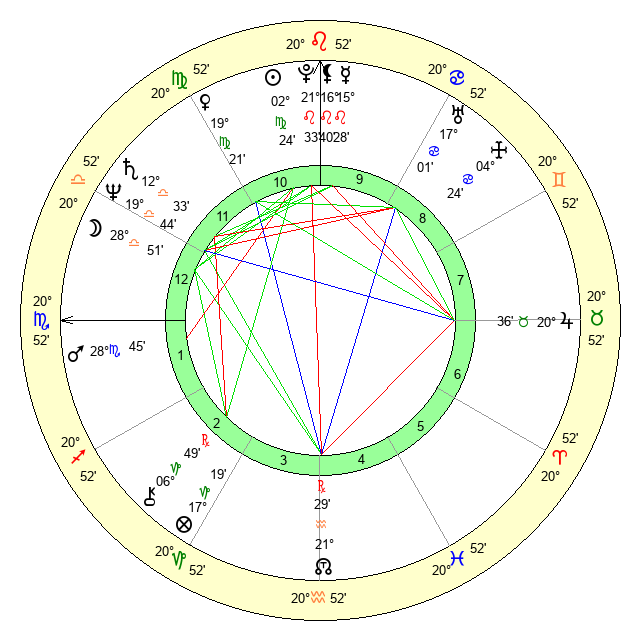 | Sun | 2 Virgo 24 | 2 Virgo 45 | 14 Scorpio 14 |
