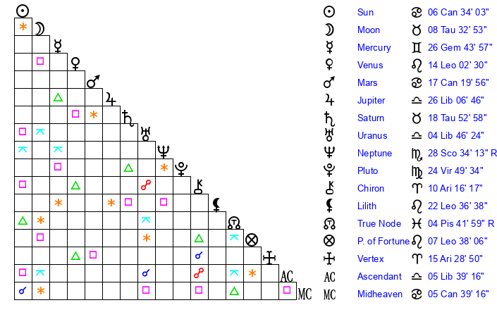 Uranus | 4 Libra 49 | 29 Taurus 37 | 6 Libra 46 |