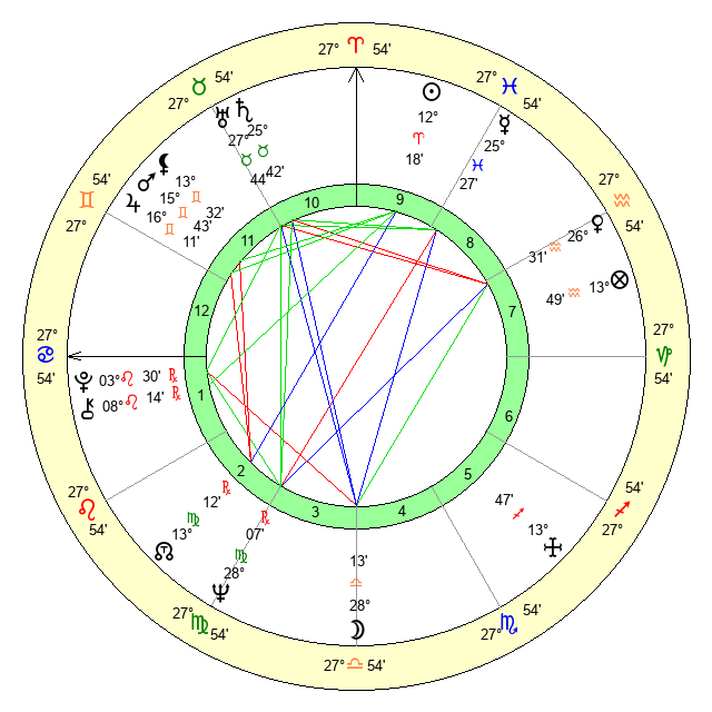 | Sun | 12 Aries 19 | 13 Aries 12 | 2 Cancer 32 |