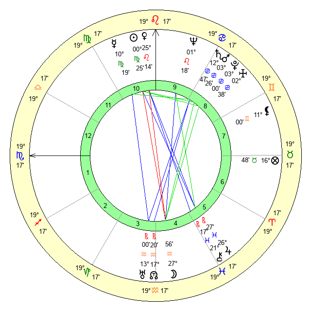| Sun | 0 Virgo 25 | 1 Virgo 47 | 19 Sagittarius 36 |