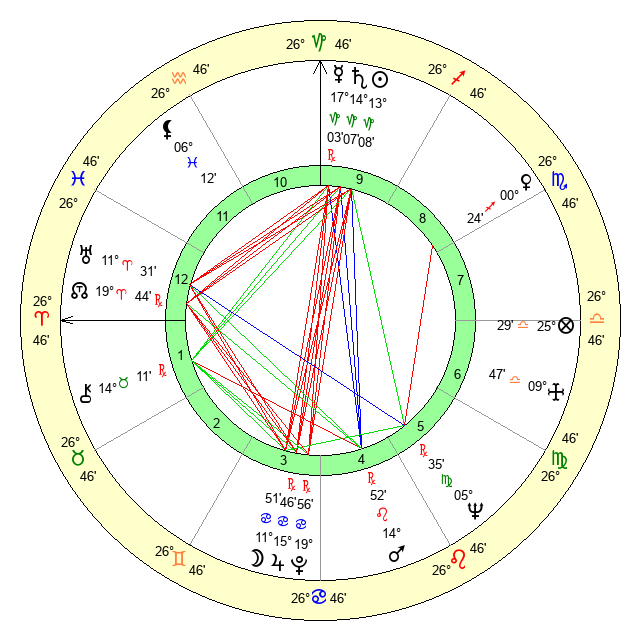 | Neptune | 5 Virgo 35 | 27 Pisces 20 | 3 Virgo 20 |