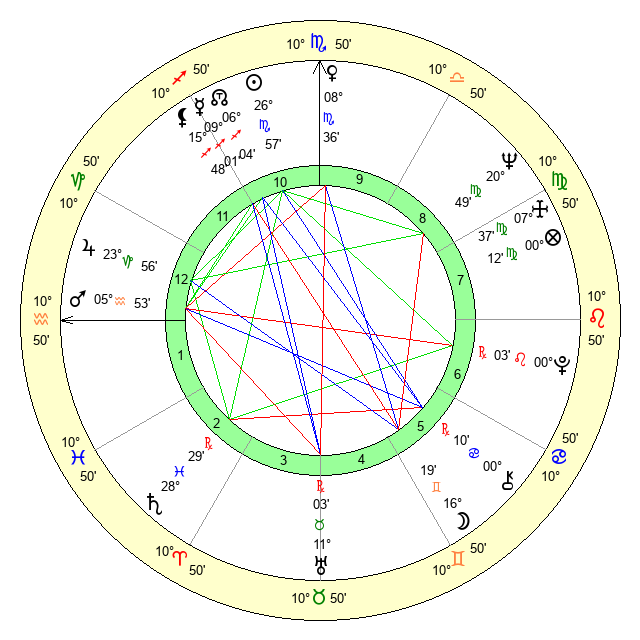 | Moon | 16 Gemini 6 | 21 Scorpio 22 | 9 Virgo 34 |