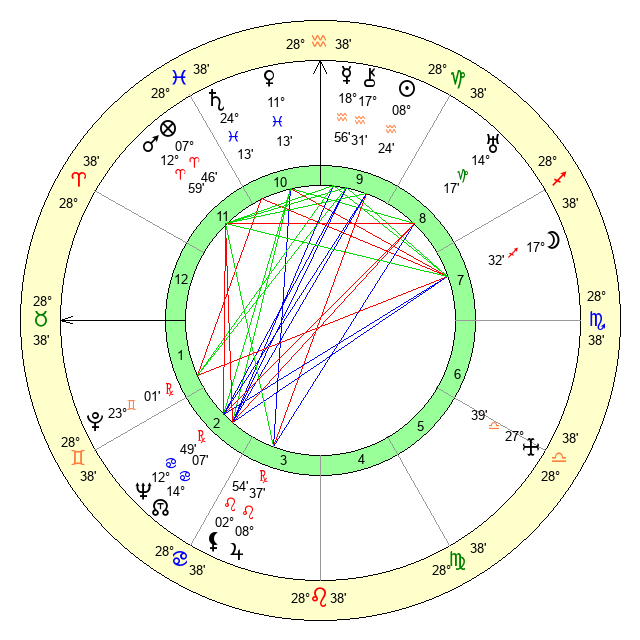 | Sun | 8 Aquarius 25 | 10 Aquarius 2 | 4 Gemini 3 |
