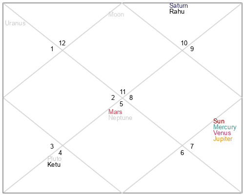 | Rahu | 4 Aquarius 41 | 14 Pisces 37 | 29 Capricorn 52 |