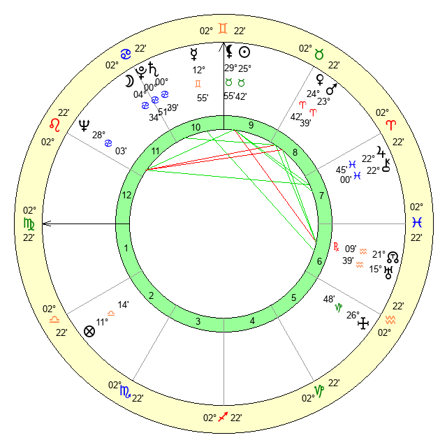 | Mercury | 12 Gemini 55 | 12 Taurus 58 | 28 Virgo 57 |