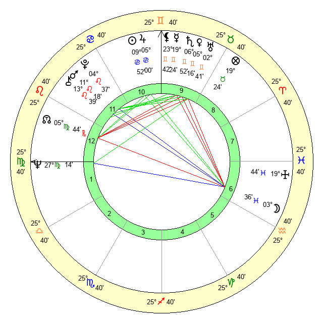 | Moon | 3 Pisces 36 | 6 Libra 30 | 14 Pisces 36 |