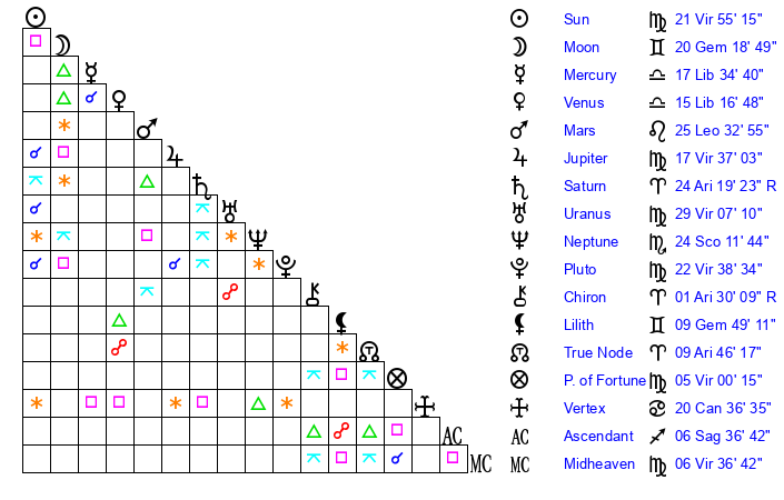 Pluto | 22 Virgo 39 | 1 Aquarius 33 | 24 Virgo 30 |