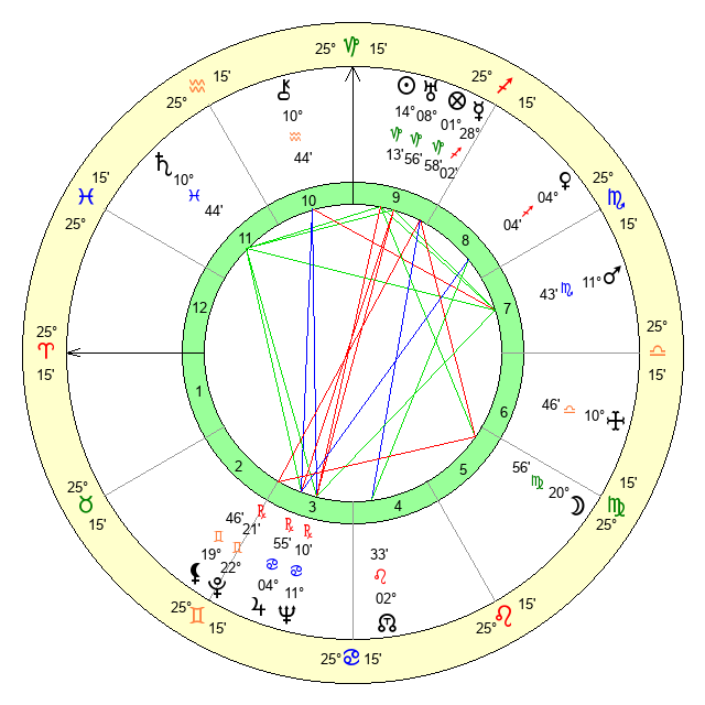 | Moon | 20 Virgo 54 | 16 Leo 8 | 10 Aquarius 26 |