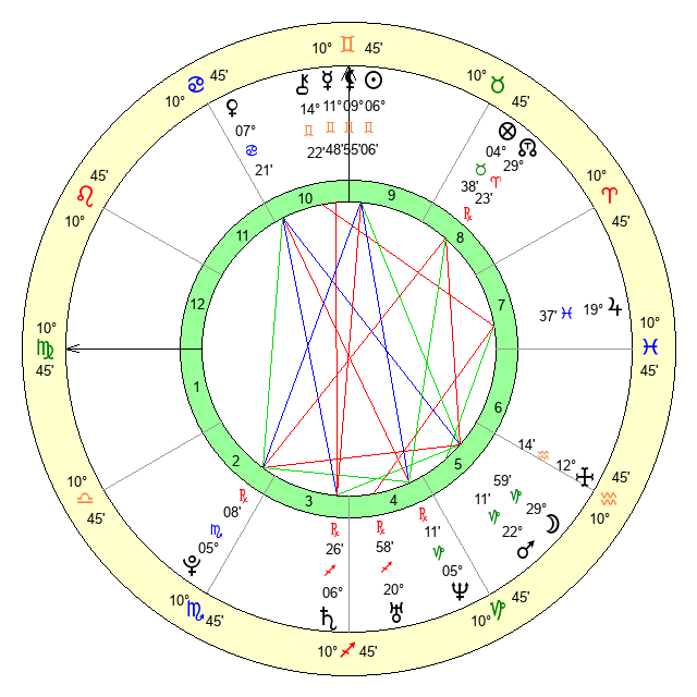 | Moon | 0 Aquarius 0 | 14 Gemini 53 | 26 Gemini 51 |