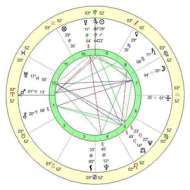 | Moon | 25 Libra 6 | 14 Virgo 30 | 1 Cancer 7 |