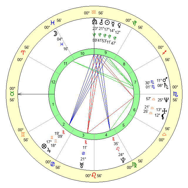 | Moon | 4 Pisces 12 | 26 Virgo 12 | 24 Libra 17 |