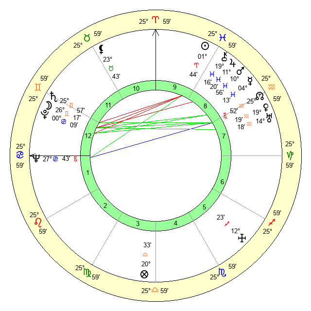 | Moon | 26 Gemini 12 | 14 Capricorn 19 | 7 Cancer 38 |