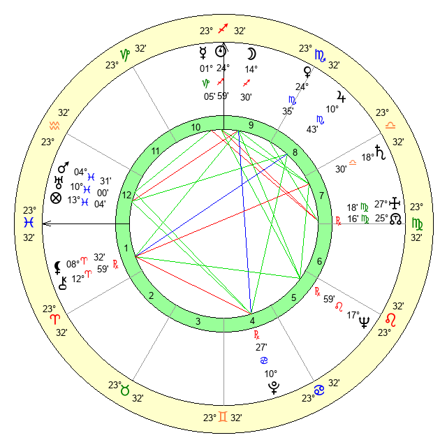 | Venus | 24 Scorpio 34 | 11 Aquarius 56 | 27 Aquarius 4 |