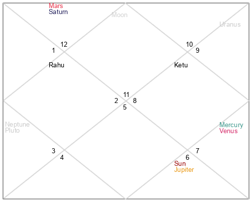 | Rahu | 10 Gemini 48 | 17 Pisces 12 | 4 Gemini 40 |