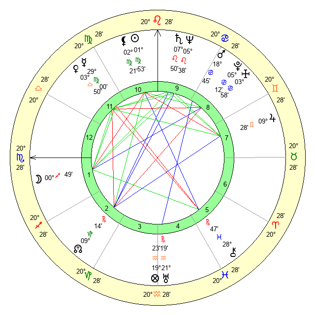 | Sun | 1 Virgo 53 | 2 Virgo 45 | 19 Sagittarius 6 |
