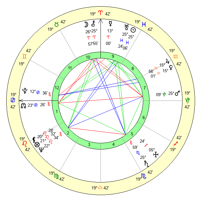 | Moon | 27 Aries 0 | 19 Libra 46 | 29 Scorpio 37 |