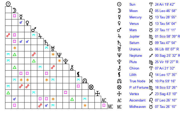 Sun | 24 Aries 20 | 25 Aries 0 | 17 Gemini 28 |