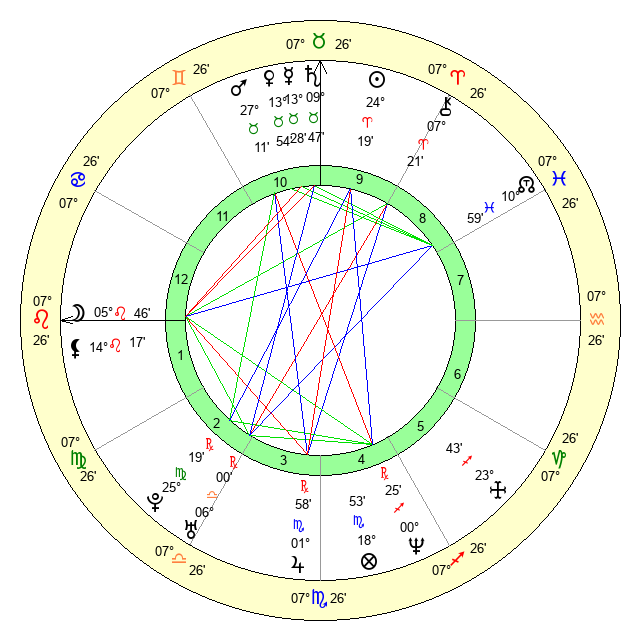 Moon | 5 Leo 46 | 13 Scorpio 18 | 9 Leo 46 |