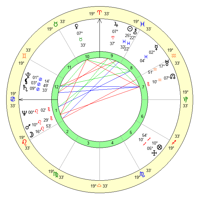 | Saturn | 10 Cancer 19 | 22 Pisces 31 | 19 Cancer 33 |