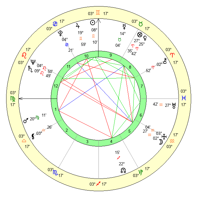 | Sun | 8 Gemini 10 | 9 Gemini 15 | 20 Virgo 46 |