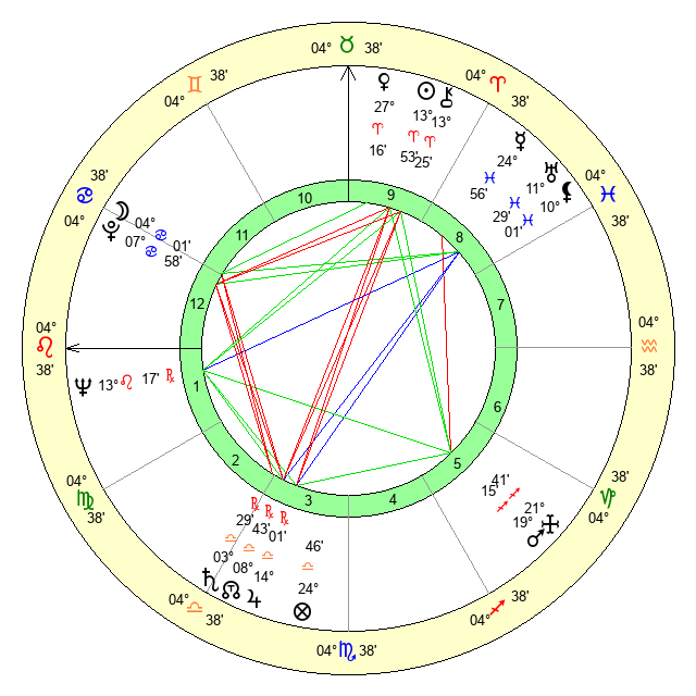 | Venus | 27 Aries 17 | 26 Pisces 7 | 1 Virgo 32 |