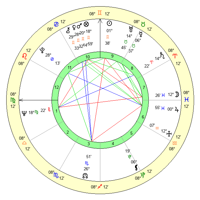 | Jupiter | 0 Pisces 51 | 26 Gemini 7 | 27 Aquarius 32 |