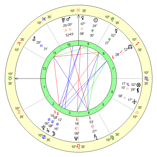 | Mars | 20 Aquarius 42 | 26 Cancer 22 | 12 Taurus 11 |